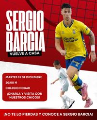 Hay visitas que ilusionan, pero recibir a uno de los nuestros eso es otro nivel. Este martes 23 de diciembre vuelve a casa Sergio Barcia, actual jugador de la U.D. Las Palmas, que visitará nuestras instalaciones para charlar con todos nuestros chicos, reencontrarse con algunos de los que fueron sus entrenadores, recordar sus tiempos de cuando vestía la camiseta del Hogar, que nos hable de sus experiencias y pasar un rato entrañable.