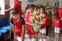 La fiesta comenzó como marca la tradición del Hogar, la ofrenda floral a María Auxiliadora de todos los equipos y cuerpo técnico del Hogar. Es una tradición impuesta por D. Raimundo: " Hacemos la fiesta que queráis, pero primero pasamos todos por la iglesia para ofrecer nuestro trabajo de la temporada a María Auxiliadora.Somos lo que somos gracias a lo que le pedimos a María Auxiliadora" .