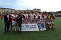 Nuestro Juvenil "B" recibió el viernes 03 Junio el trofeo del ascenso a 1ª tras un triangular amistoso con los otros dos campeones de grupo, Arenas de Alcabre y la Escuela Deportiva Denis Suarez. El resultado del torneo es lo menos, como así lo acreditaban nuestros rivales, ya que se trataba de rendir homenaje a los tres equipos en el campo Federativo de Coya. Enhorabuena a nuestros chicos que alcanzaron el objetivo que se propusieron a principios de temporada.