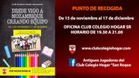Más de una vez nuestro "presi" nos dice que nuestro Club... y los más veteranos le finalizamos la frase: Sí, somos un club de fútbol pero digamos que somos distintos a otros". Para ejemplo, aquí tenéis la muestra un año más volcándonos en una campaña solidaria navideña. Bueno, concretamente en dos, " Cada nen@ un xoguete " y " Desde Vigo a Mozambique creando equipo". Dos campañas que desde el minuto cero sabíamos que iban a funcionar. Lo que no llegamos a imaginar es que este año os habéis salido, Equipo. Y desde aquí podemos deciros que estamos muy orgullosos de vuestra solidaridad, de como os habéis volcado una vez más. Aprovechamos la ocasión para agradecer también el trabajo desempeñado por el equipo encargado de llevar adelante las campañas, organizando, clasificando y embalando todo lo recibido, las cuales os quieren transmitir un mensaje de agradecimiento: