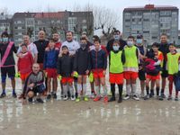 Iniciativa de nuestro Infantil B. En pleno periodo vacacional navideño se les ocurre montar un partido entre padres y jugadores. Condición indispensable para jugar, donar algo para los chic@s de Mozambique.